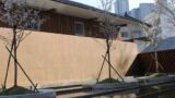 ベージュの外観とガラス張りのロビーが印象的で、ナチュラルモダンな雰囲気です。